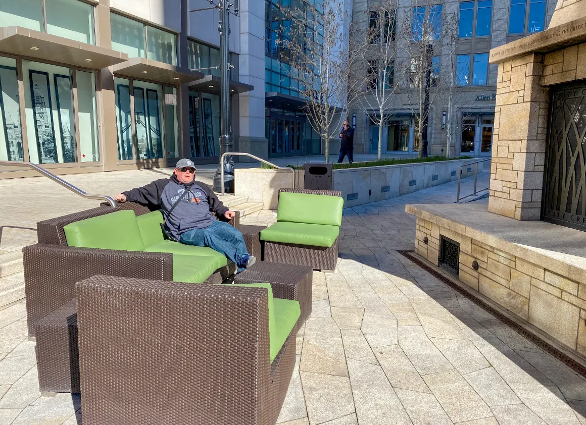 Aber wir kennen den Ort ja noch anders:  Vor zwei Jahren standen wir hier bei Sonnenschein, offenen Gebäuden und perfekt gepflegten Gartenanlagen.  Der Kontrast ist groß – aber die Erinnerungen machen ihn erträglich. Trotzdem: Der Tempel beeindruckt. Selbst durch Bauzäune hindurch. Man spürt, dass dieser Ort Bedeutung hat – für viele Menschen, für die Stadt, für die Geschichte Utahs. Und genau das ist es, was Salt Lake City ausmacht:  nicht die Größe, nicht die Skyline – sondern die Mischung aus Symbolik, Historie und Alltagsleben.