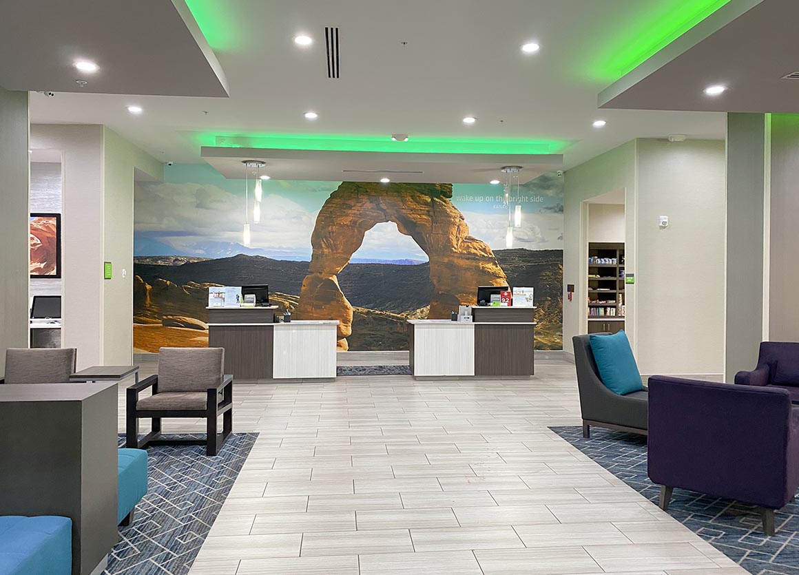 Während wir durch Panguitch rollen, läuft im Radio ein Country-Song – und für einen kurzen Moment fühlt sich alles an wie aus einem amerikanischen Roadmovie. Nur mit weniger Staub, mehr Kaffee – und ziemlich guter Gesellschaft. Um 19 Uhr ist es endlich so weit: Wir rollen in Kanab ein. Das Licht ist weich, die Straßen vertraut, und dieser Ort fühlt sich sofort wieder an wie ein Lieblingspulli –  man schlüpft rein, und alles passt. Unsere Unterkunft für die nächsten vier Nächte: das nagelneue La Quinta Hotel.