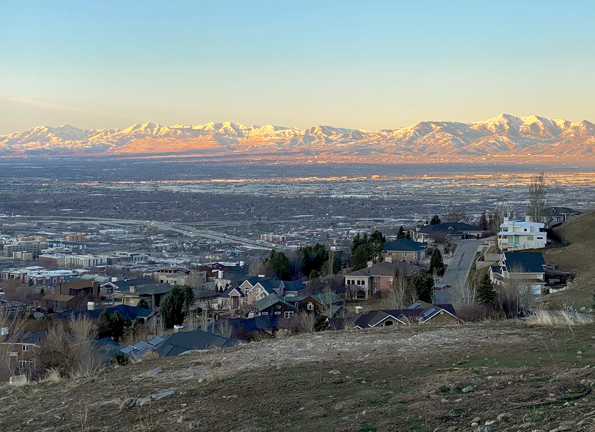 Von hier aus sollen sich die  dunkelgrünen Wälder , die sanften Hügel,  die schneebedeckten Gipfel der Wasatch Mountains  und  die Innenstadt von Salt Lake City  gleichzeitig zeigen. Und das alles im warmen Licht des Morgens, wo selbst Strommasten irgendwie ästhetisch wirken.