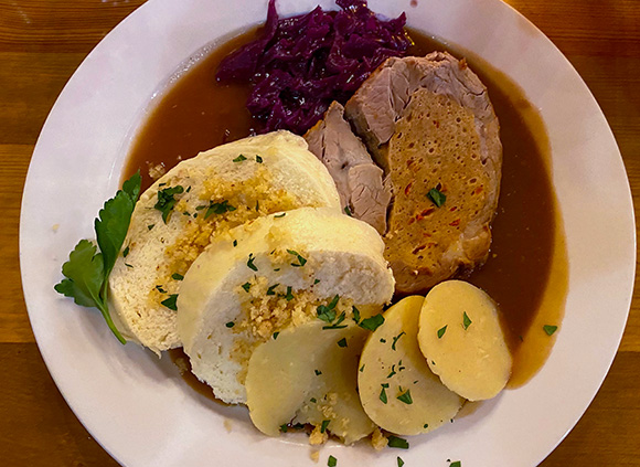 🍽️ Mama wählte das Svíčková, einen böhmischen Sahnerinderbraten mit Preiselbeeren, Sahne, Böhmischen Knödeln und extra Rotkraut für insgesamt 15,90€ plus 3,20€.