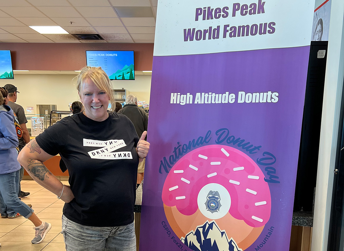Doch die eisige Kälte ließ uns schnell umdisponieren. Genug Gipfelsturm, Zeit für die wahre Belohnung: die legendären Pikes Peak Donuts! Mit roten Nasen und fröstelnden Fingern stürmten wir ins wärmende Visitor Center – ein kleines, aber feines Refugium für alle, die nach Luft, Wärme und einem süßen Trost suchten. Und da waren sie: die berühmten Pikes Peak Donuts.