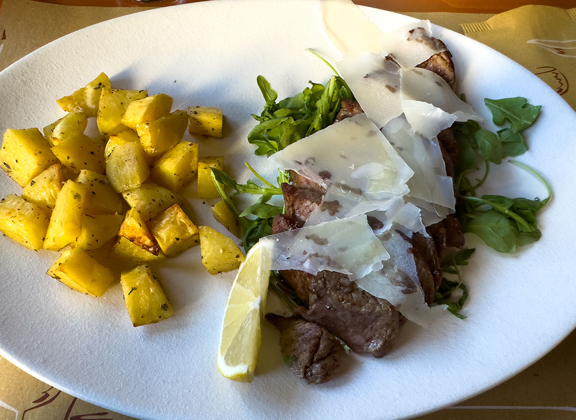 Die Pizzeria war genau das, was wir brauchten: rustikal, gemütlich und voller duftender Versprechen. Nach einer langen Fahrt der perfekte Ort, um endlich mal durchzuatmen. Stefan? Keine Experimente. Wie immer landeten seine geliebten Spaghetti auf dem Teller. Ich hingegen gönnte mir eine zarte Tagliata – butterweich, perfekt gewürzt, einfach himmlisch. Der Duft von frischen Kräutern und Knoblauch lag in der Luft, und mit jedem Bissen schmolz die letzte Reise-Müdigkeit dahin. Ein Glas prickelndes Mineralwasser dazu – und unsere Akkus waren wieder voll. Frisch gestärkt, bester Laune und mit Italien im Blick ging es weiter Richtung Gardasee, während die Nachmittagssonne warme Streifen über die Windschutzscheibe zog. Das Gefühl von Freiheit? Genau hier.