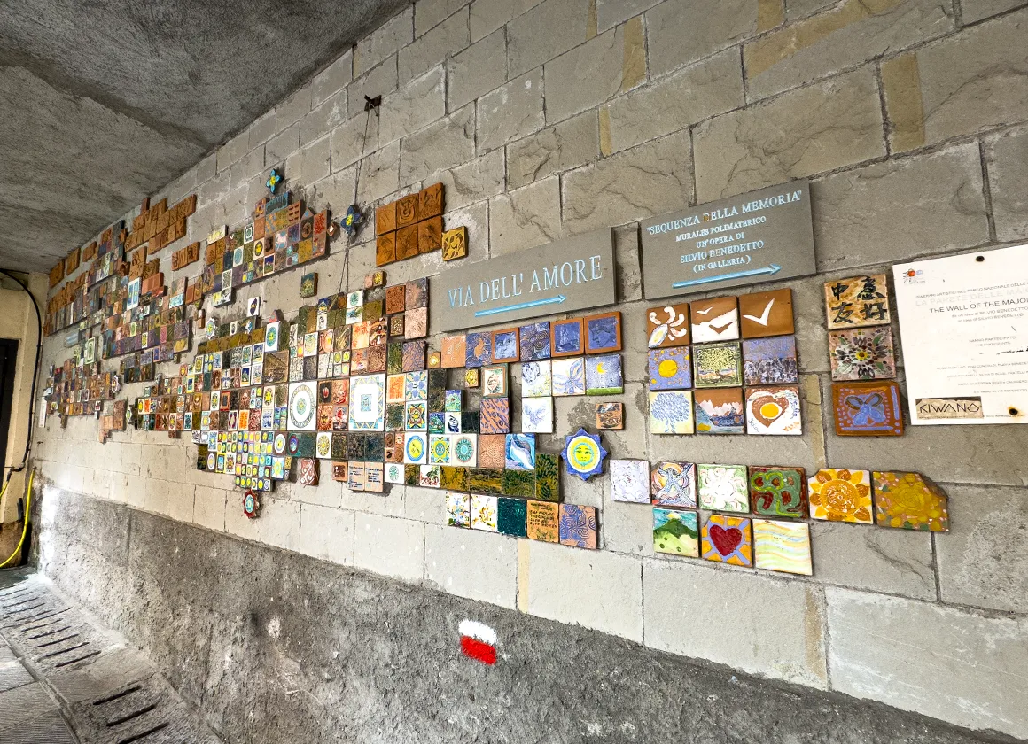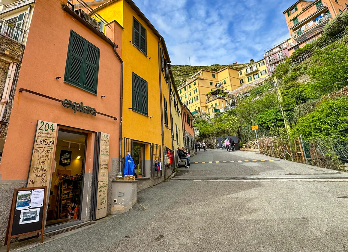 Wir steigen erst einmal durch einen neonblauen Tunnel – ja, richtig gelesen – direkt ins Herz des Dorfes. Und das pulsiert. Riomaggiore lebt und atmet in allen Farben. Die Fassaden sind ein Flickenteppich aus Gelb, Orange, Rosa und Terrakotta. Fensterläden knarzen im Wind, irgendwo dudelt Musik, und der Duft von Pizza mischt sich mit dem von salziger Seeluft und Zitrusbäumen.