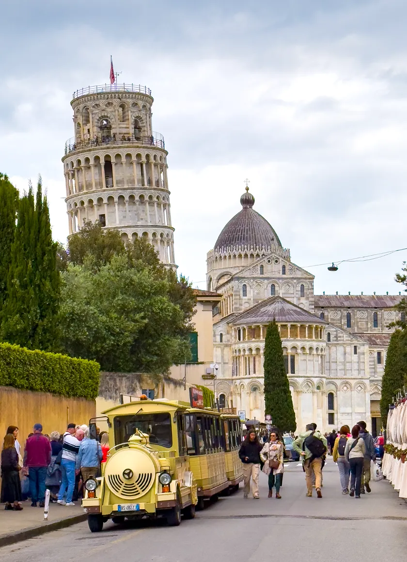 Also: Rucksack auf, Kinder eingesammelt, Schuhe geschnürt – Pisa, wir kommen. Vom Parkplatz aus geht’s los: ein guter halbstündiger Fußmarsch, vorbei an Wohnhäusern mit kunstvoll verstaubten Fensterläden, kleinen Lebensmittelläden, die aussehen, als wären sie seit 1983 in Familienhand – und einem Gemisch aus mediterranem Gemurmel und Touristen auf der Zielgeraden.