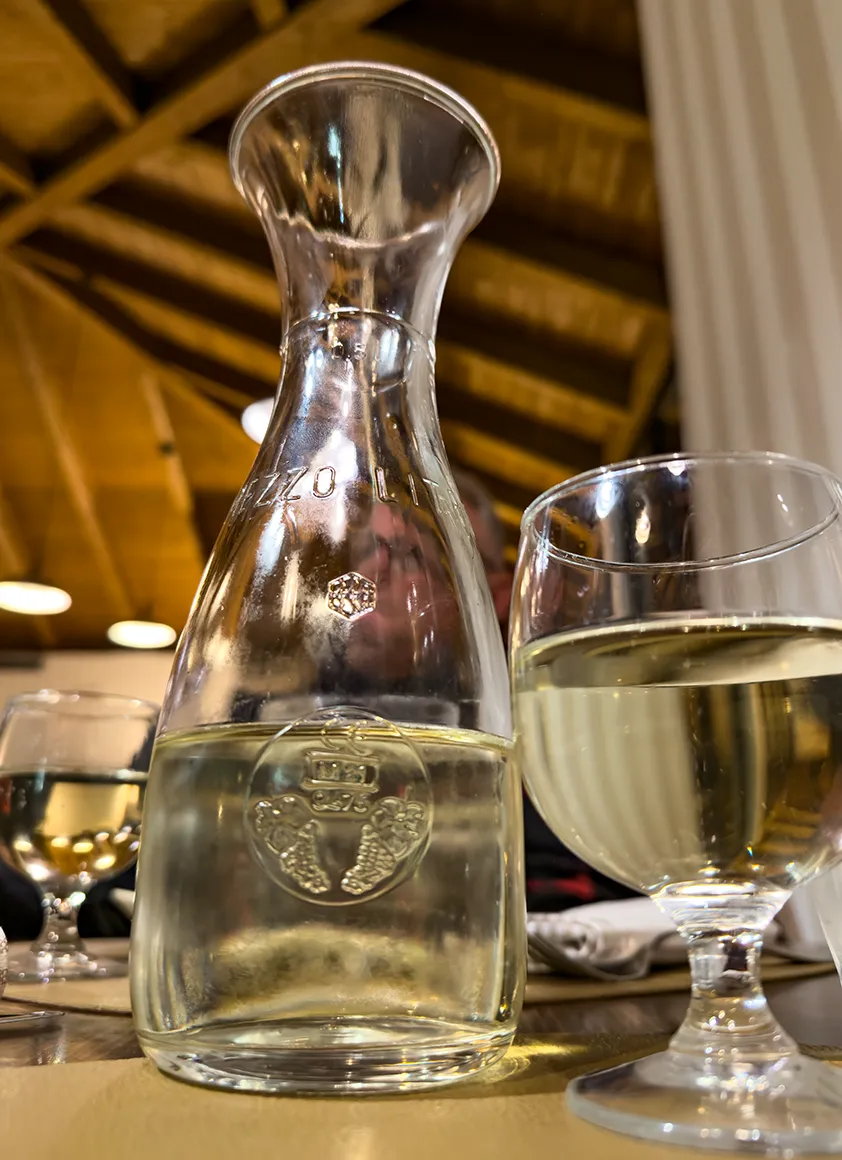 Also schlüpfte Stefan in den Abendmodus und marschierte kurzerhand zum Campingplatz-Restaurant „Hostaria Felsinea“, um einen Tisch für 19:30 Uhr zu reservieren. Pünktlich erschienen wir zum Dinner – diesmal ganz ohne Buffetbriefing oder Frühstücksdiktat. Keine italienische Einweisung, keine Handzeichen, kein Zeigen auf nicht vorhandene Uhren – einfach hinsetzen, bestellen, genießen.