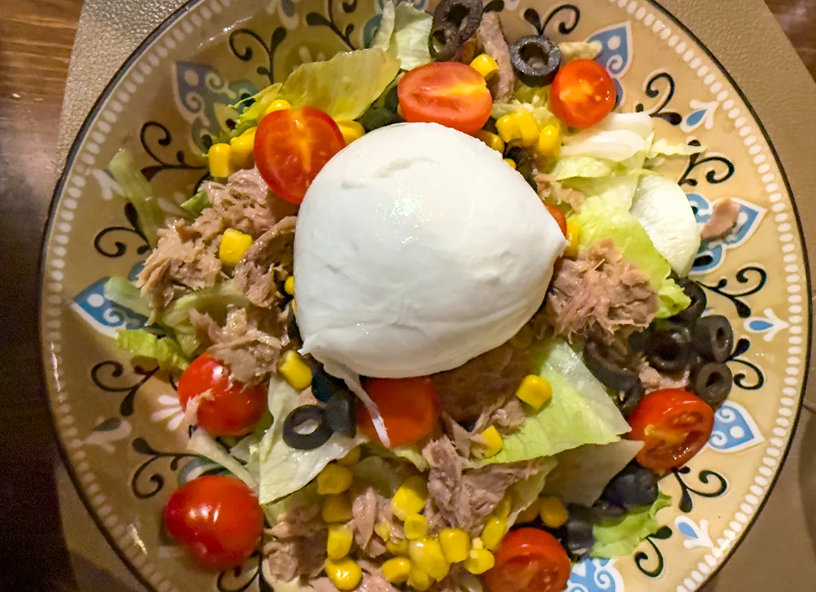 Ich nahm einen Thunfischsalat mit Buffalo-Mozzarella, der leicht, frisch und überraschend gut gewürzt war – wie gemacht für müde Spaziergänger mit Rest-Hunger. Stefan entschied sich für Spaghetti Pomodoro, ganz klassisch, ganz italienisch, und dazu ein kühles Glas Weißwein, das unsere durchgelaufenen Füße innerlich applaudieren ließ.