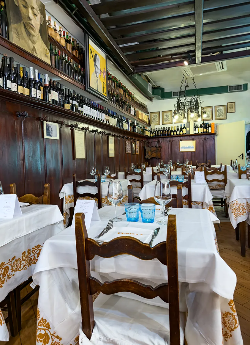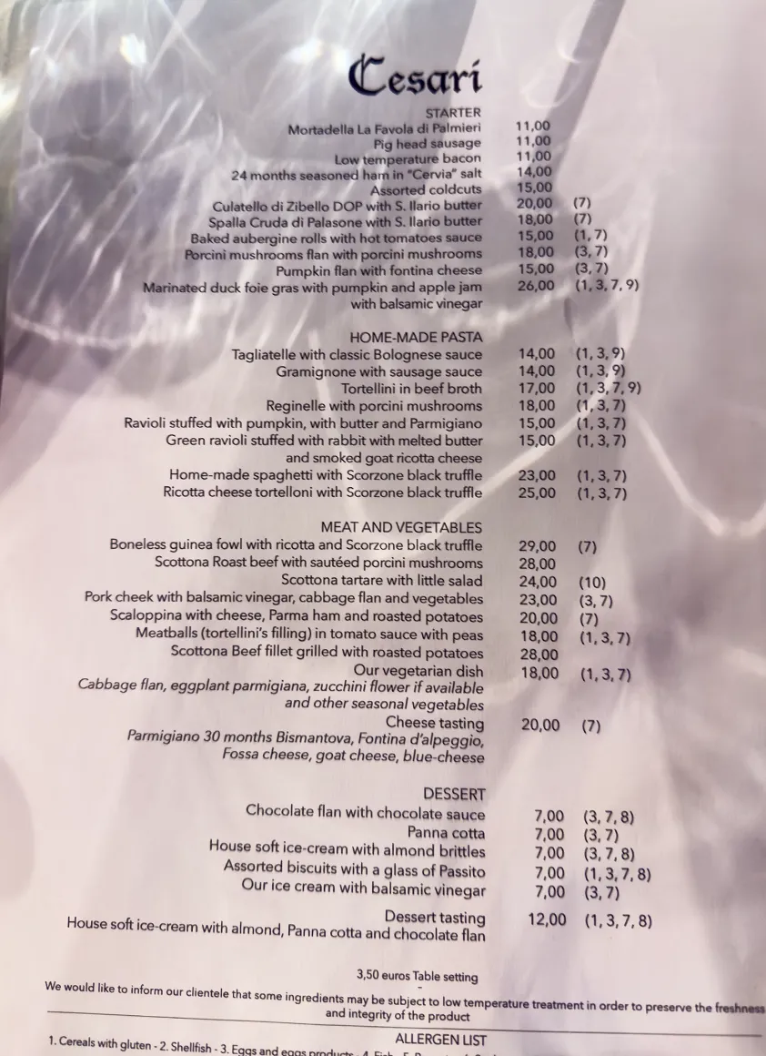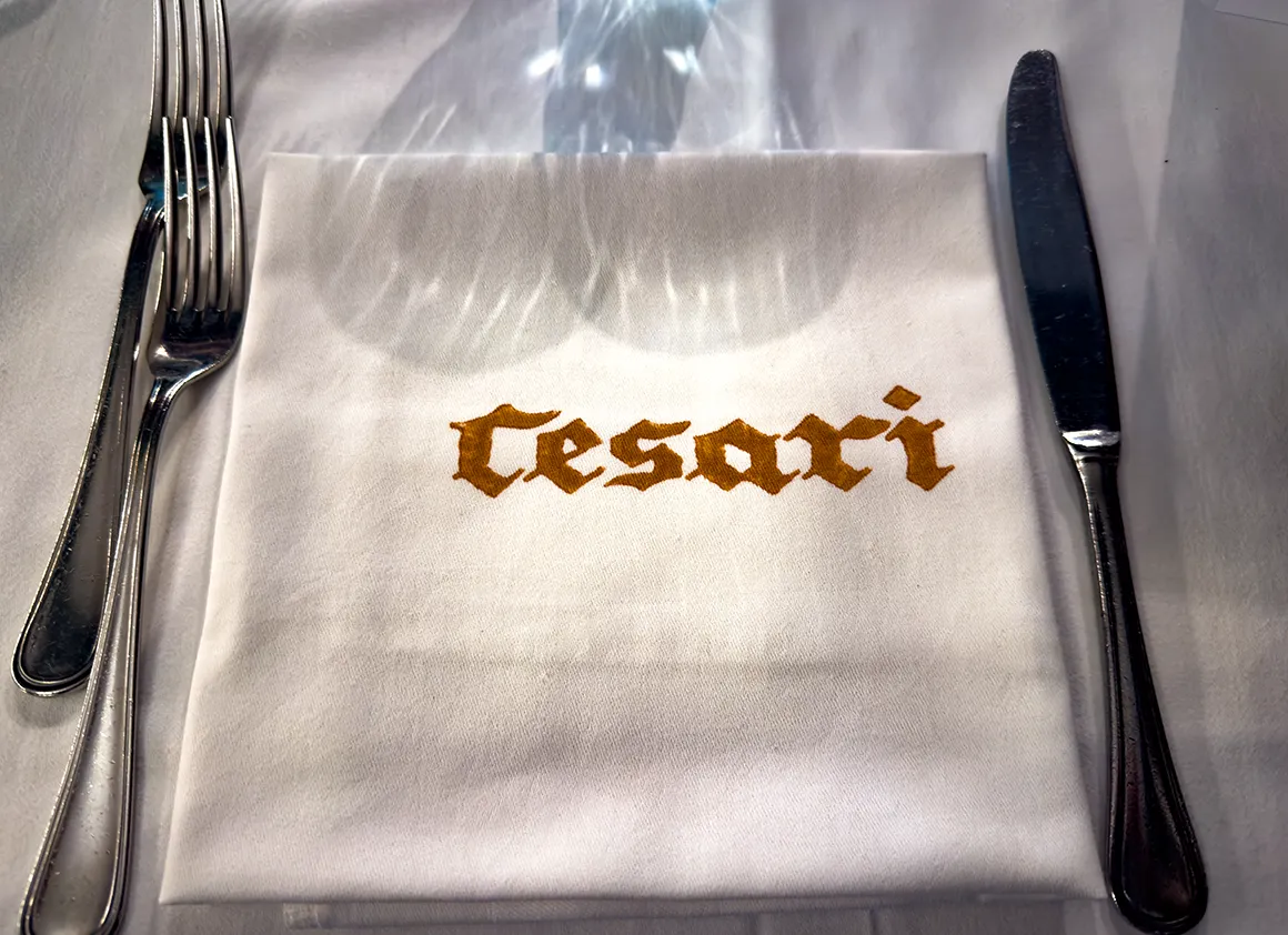 Wir lachten, bogen erneut ab, machten eine letzte Schleife – und siehe da: Cesari hatte inzwischen geöffnet! Wir betraten das kleine, charmante Restaurant mit der beruhigenden Atmosphäre eines Ortes, der weiß, dass er nichts beweisen muss. Kein übertriebener Chic, keine Show – einfach dicke Holzbalken, weißgedeckte Tische, leises Gemurmel, zufriedene Gäste.