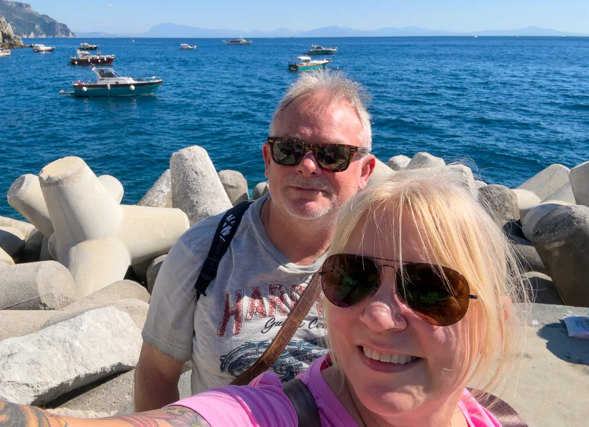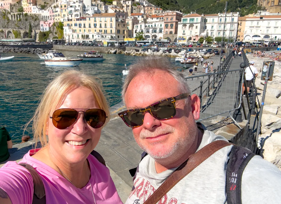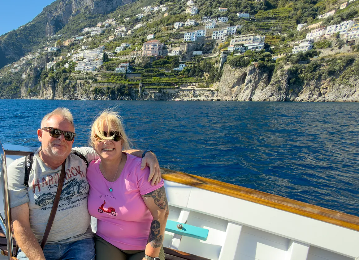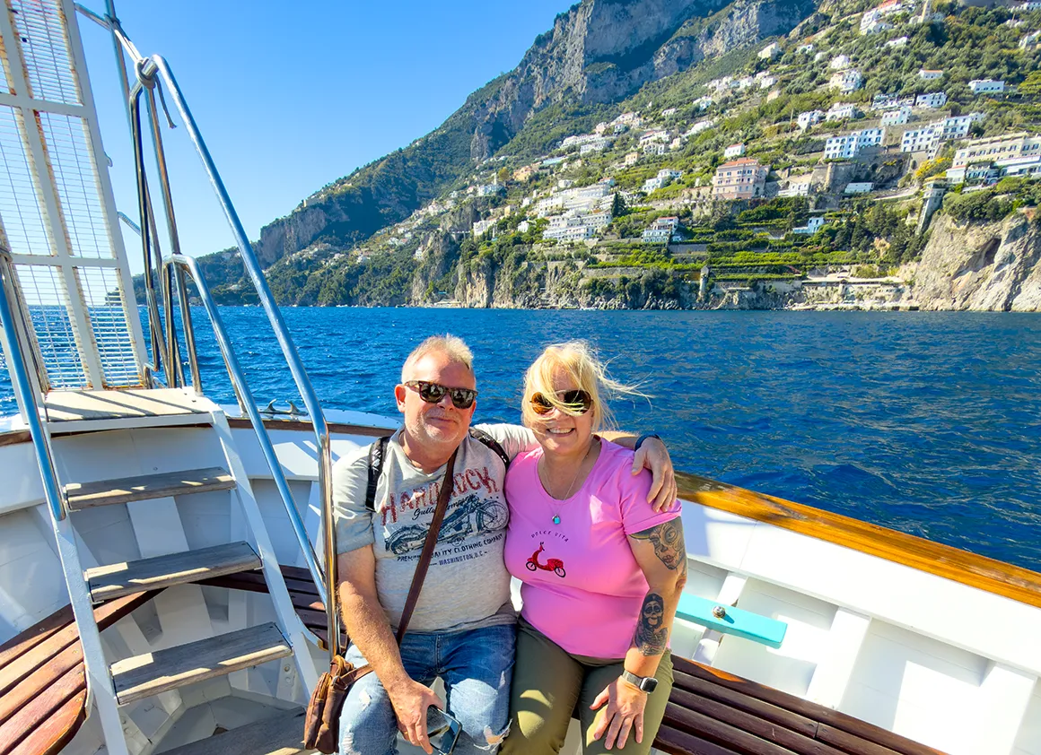 Zurück in Richtung Amalfi – diesmal mit Rückenwind, Meeresbrise und einer geballten Ladung Promi-Klatsch vom Bootsführer. Der gute Mann war ein wandelndes Lexikon in Flipflops. Kaum hatte das Schiff wieder Fahrt aufgenommen, wurde aus der Rückfahrt eine kleine VIP-Kreuzfahrt: Da oben, das Anwesen von Sophia Loren. Dort drüben, ein Fünf-Sterne-Hotel, wo sich Stars die Türklinke in die Hand geben. Und das da – dieser Felsbogen im Meer? „Two Elephants kissing“, erklärte er mit einem Grinsen, und tatsächlich: Mit etwas Fantasie sieht der Arch aus wie zwei Dickhäuter im innigen Rüsselkuss. Wir kamen aus dem Staunen kaum heraus – und aus dem Fotografieren auch nicht. Es war, als würde jemand die Amalfi-Küste in eine Mischung aus Reisejournal und People-Magazin verwandeln. Und mittendrin wir, selig in der Nachmittagssonne.