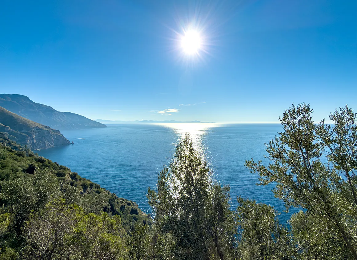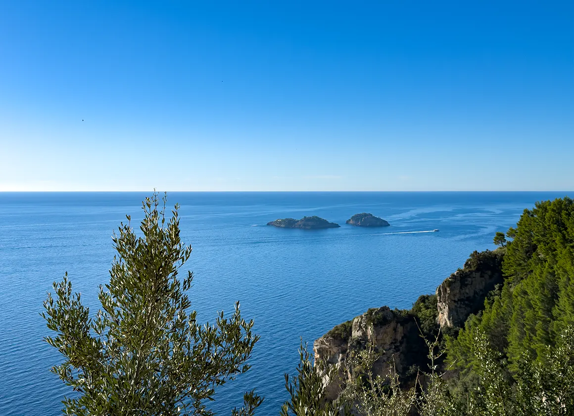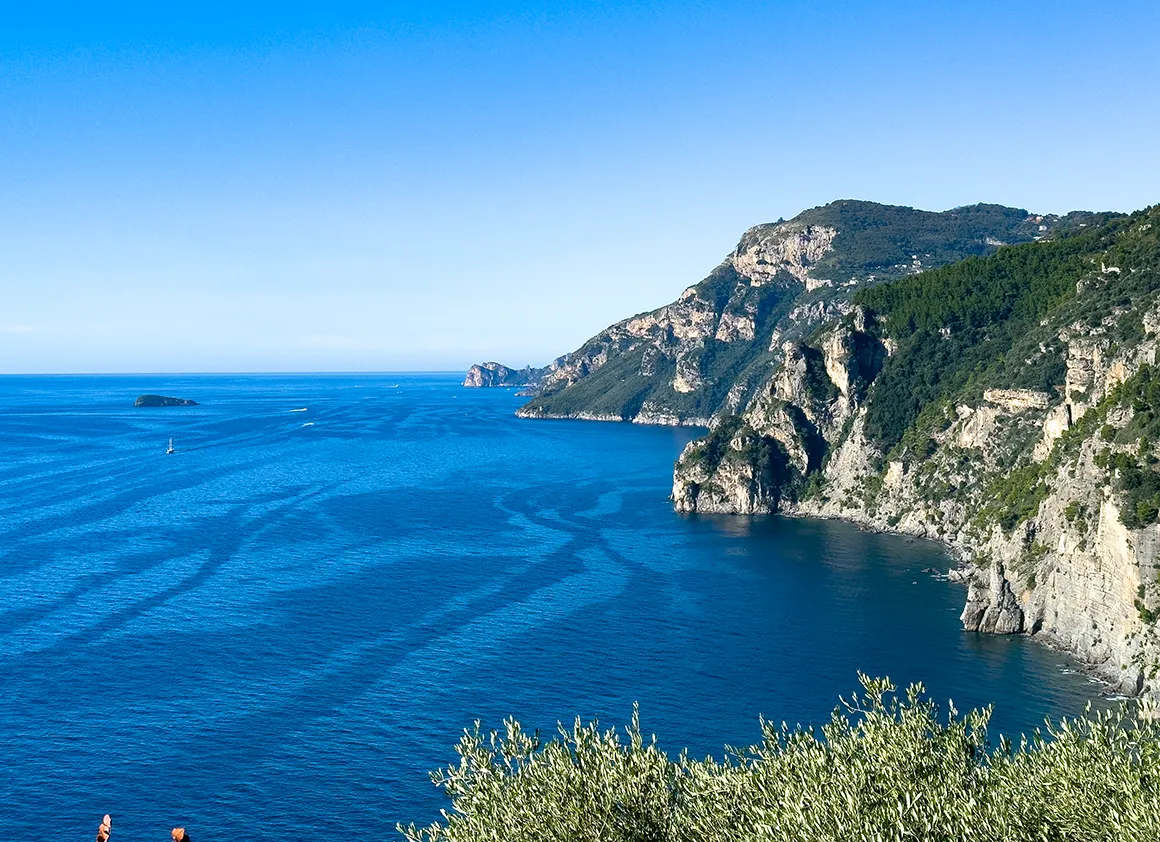 Wir lassen Pompeji hinter uns und schrauben uns kurvenreich die Serpentinen hinauf, über einen Bergrücken, der uns bald den ersten Blick aufs glitzernde Meer freigibt. Der Golf von Neapel liegt hinter uns, jetzt öffnet sich die Küste nach Süden – und mit jedem Höhenmeter scheint der Blick spektakulärer zu werden. Klippen, Olivenbäume, das schimmernde Blau – als hätte man das Meer kurzerhand mit Photoshop bearbeitet.