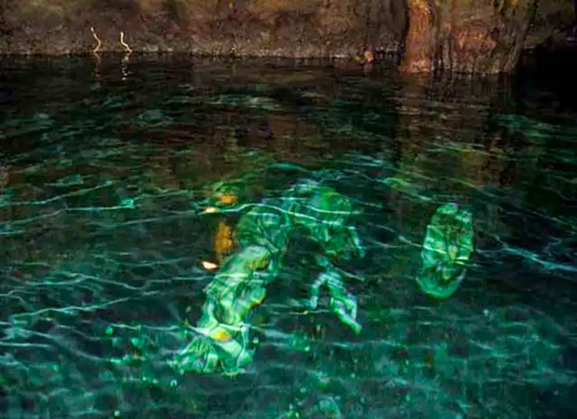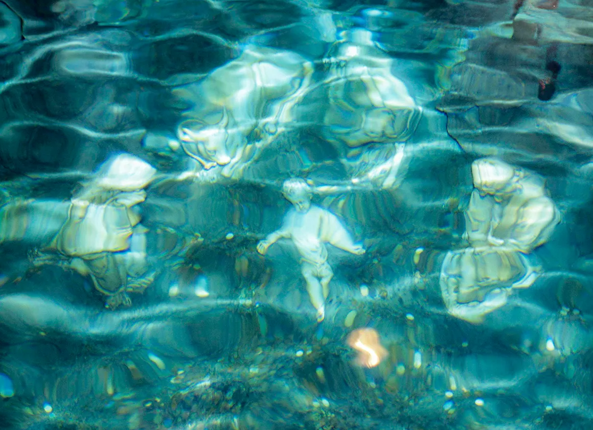 Auf dem Grund der Grotte liegt eine lebensgroße Krippe. Kein Scherz. Maria, Josef, das Jesuskind, ein paar Hirten und Tiere – alle versenkt, dauerhaft unter Wasser.