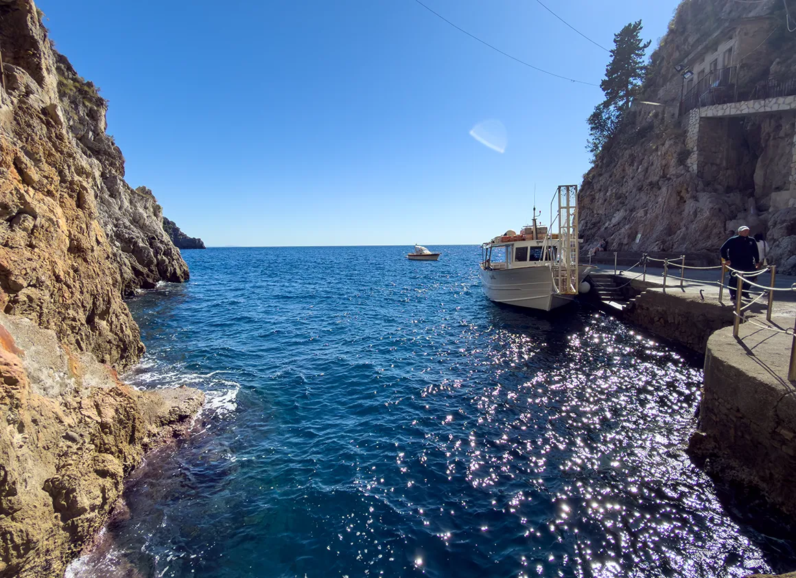 Also ab zum Schalter. Ich frage nach, und siehe da: Die Amalfiküste hat ihre eigene blaue Grotte. Zugegeben: etwas weniger berühmt, dafür günstiger, näher – und offenbar ebenso schillernd. 20 € pro Person, plus weitere 10 € am Eingang der Grotte – für das Boot, das uns hineinschippert. Ein kurzer Blick zu Stefan – er zuckt mit den Schultern, ich grinse, wir nicken.