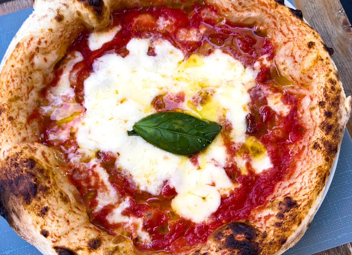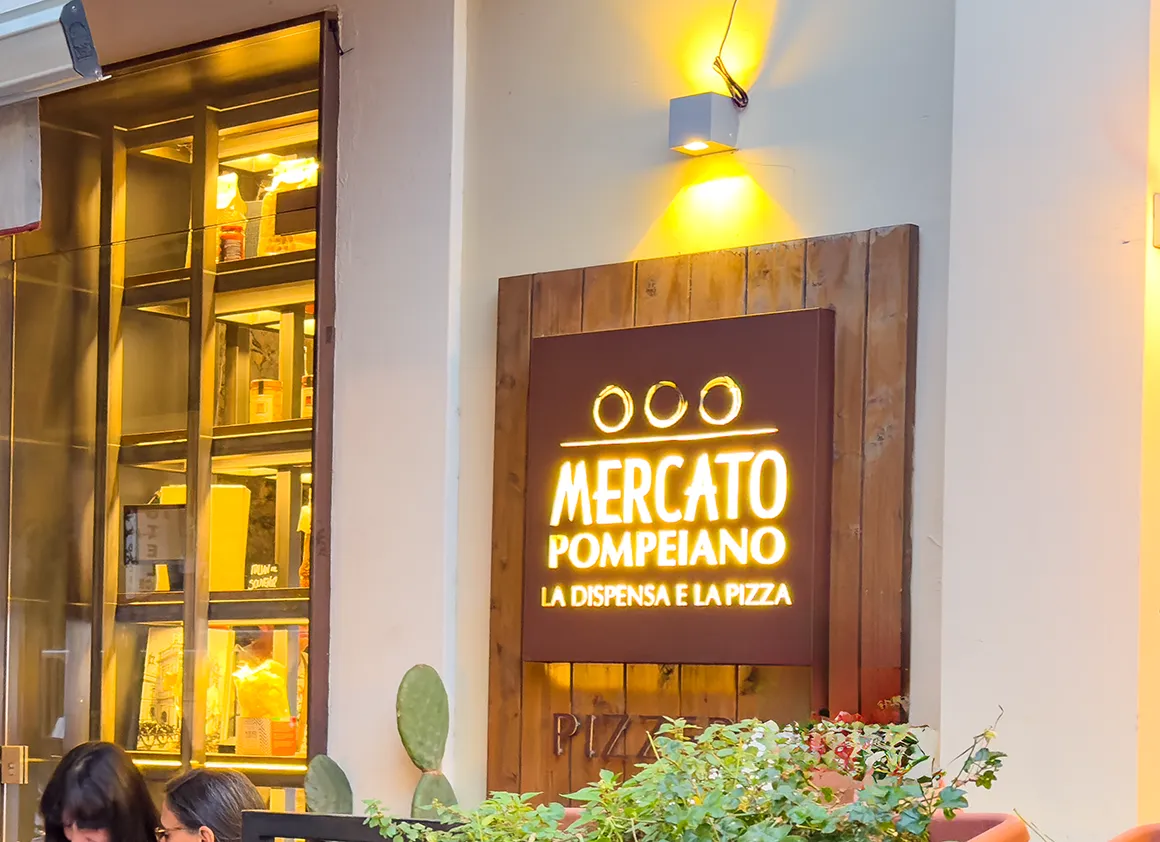 Langsam meldet sich dann doch der Hunger. Kein Wunder – seit dem Frühstück nur Zitronen, Salzluft und ein bisschen Grotto-Abenteuer. Wir entdecken das Mercato Pompeiano, ein modernes Restaurant mit rustikalem Charme, irgendwo zwischen Foodie-Treffpunkt und italienischem Wohnzimmer. Die Karte? Volltreffer. Ich bestelle die Margherita Gialla – eine sonnengelbe Hommage an die Tomate in ihrer charmantesten Version: Gelbe Tomaten, Mozzarella, Parmigiano-Reggiano-Flocken. Stefan bleibt klassisch und entscheidet sich für die Margherita DOP – pur, perfekt und auf den Punkt: Tomatensauce, Mozzarella, Basilikum, Olivenöl. Zwei Pizzen, zwei Philosophien – und beide ein Gedicht.