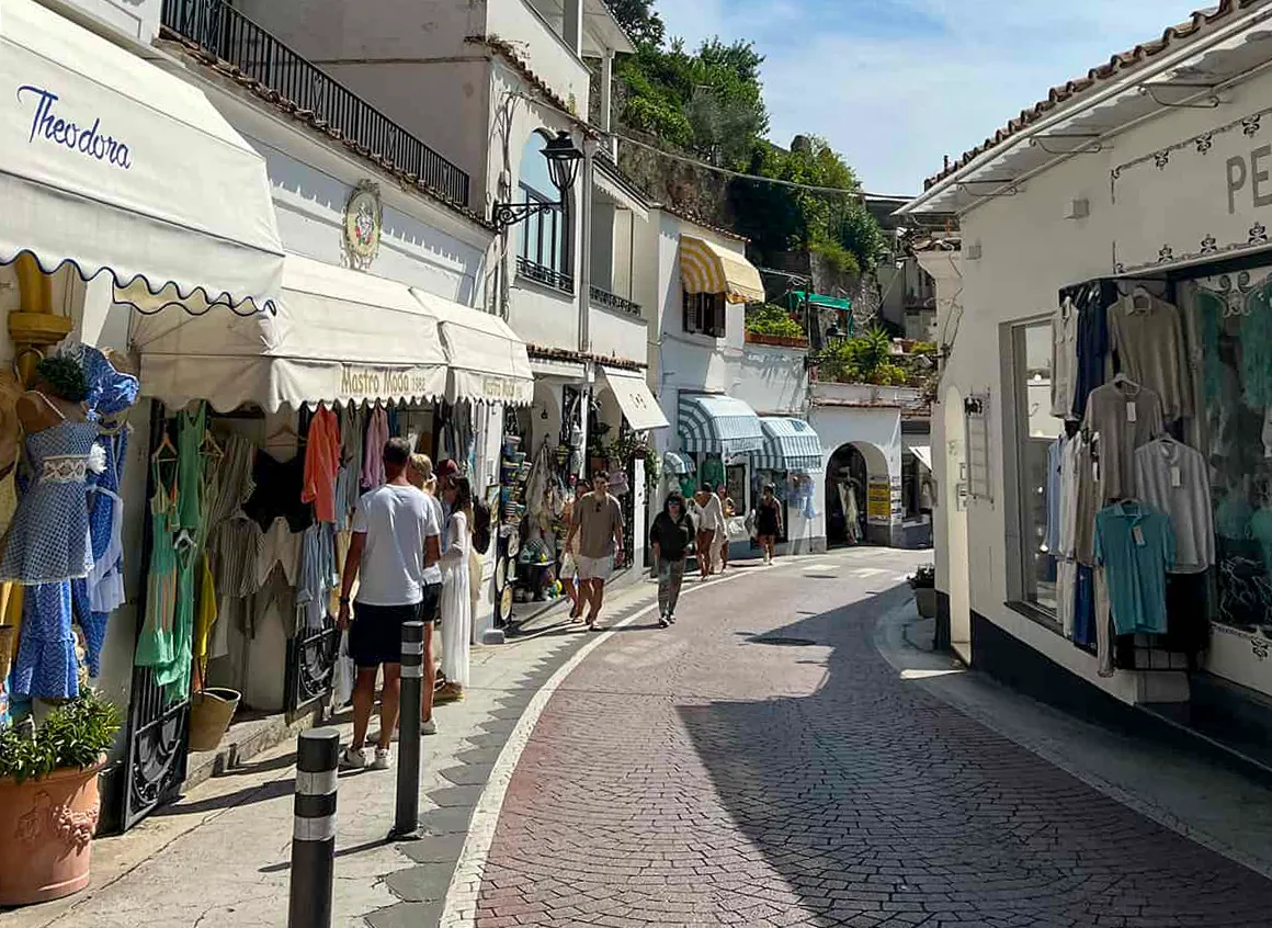 Doch ein Stopp ist unmöglich. Die Straße ist so schmal, dass schon ein leichtes Blinzeln in Richtung Schaufenster für Chaos sorgen könnte. Also bleibt es beim visuellen Bummel im Vorbeifahren. Positano to go. Keine Pause, kein Halt – aber ein Erlebnis. Ein kleiner Film im Kopf, während die Räder weiterrollen. Und so fahren wir weiter, mit einem Hauch von Fernweh im Rückspiegel – Richtung Amalfi.