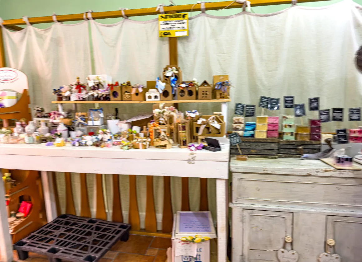 Und dann steh ich da: vor einem kleinen Schaufenster, das aussieht wie der Vintage-Geschenkshop meiner Träume – Seifen, Schleifen, Schleckereien. Ein bisschen wie Pinterest mit italienischem Akzent. Über der Tür hängt ein verwittertes Schild: Da Fattoria Biagino. Und plötzlich riecht alles ein bisschen nach Abenteuer – und Honig.