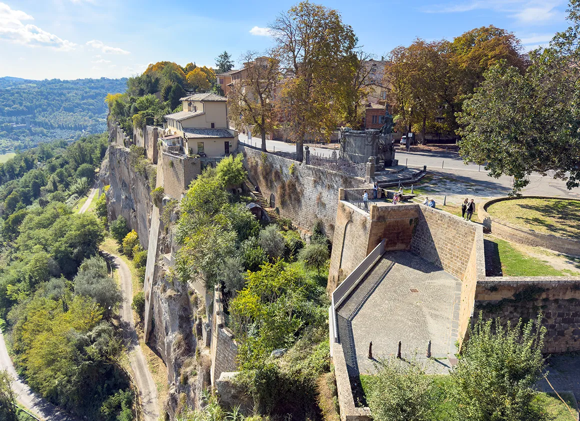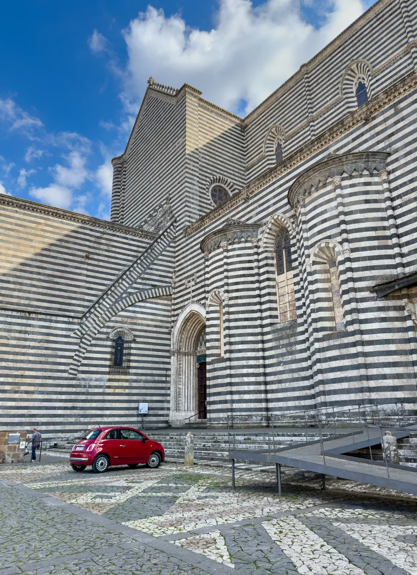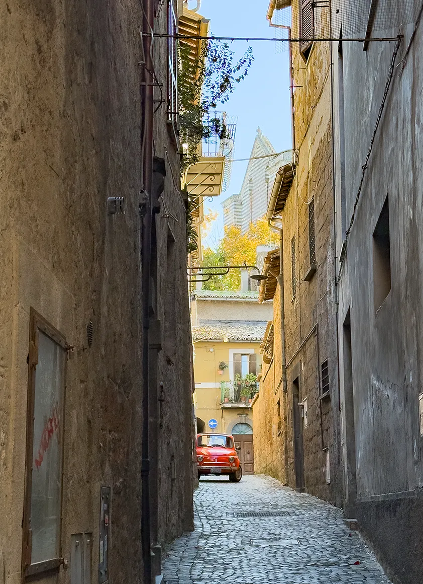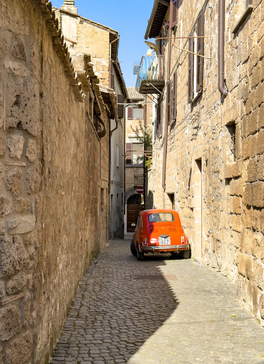 Die Route führt uns schnurgerade auf der Autobahn an Rom vorbei – und natürlich werfe ich einen sehnsüchtigen Blick nach links, als könnte ich den Petersdom zwischen den Verkehrsschildern erspähen. Aber keine Zeit für nostalgisches Abbiegen. Rom steht diesmal nicht auf der Liste. Aber ein andermal. Versprochen, Rom! Unser Ziel: Eine Stadt, die aussieht, als hätte man sie aus einem Fantasyfilm ausgeschnitten – hoch oben auf einem Tuffsteinfelsen, majestätisch und ein kleines bisschen magisch.