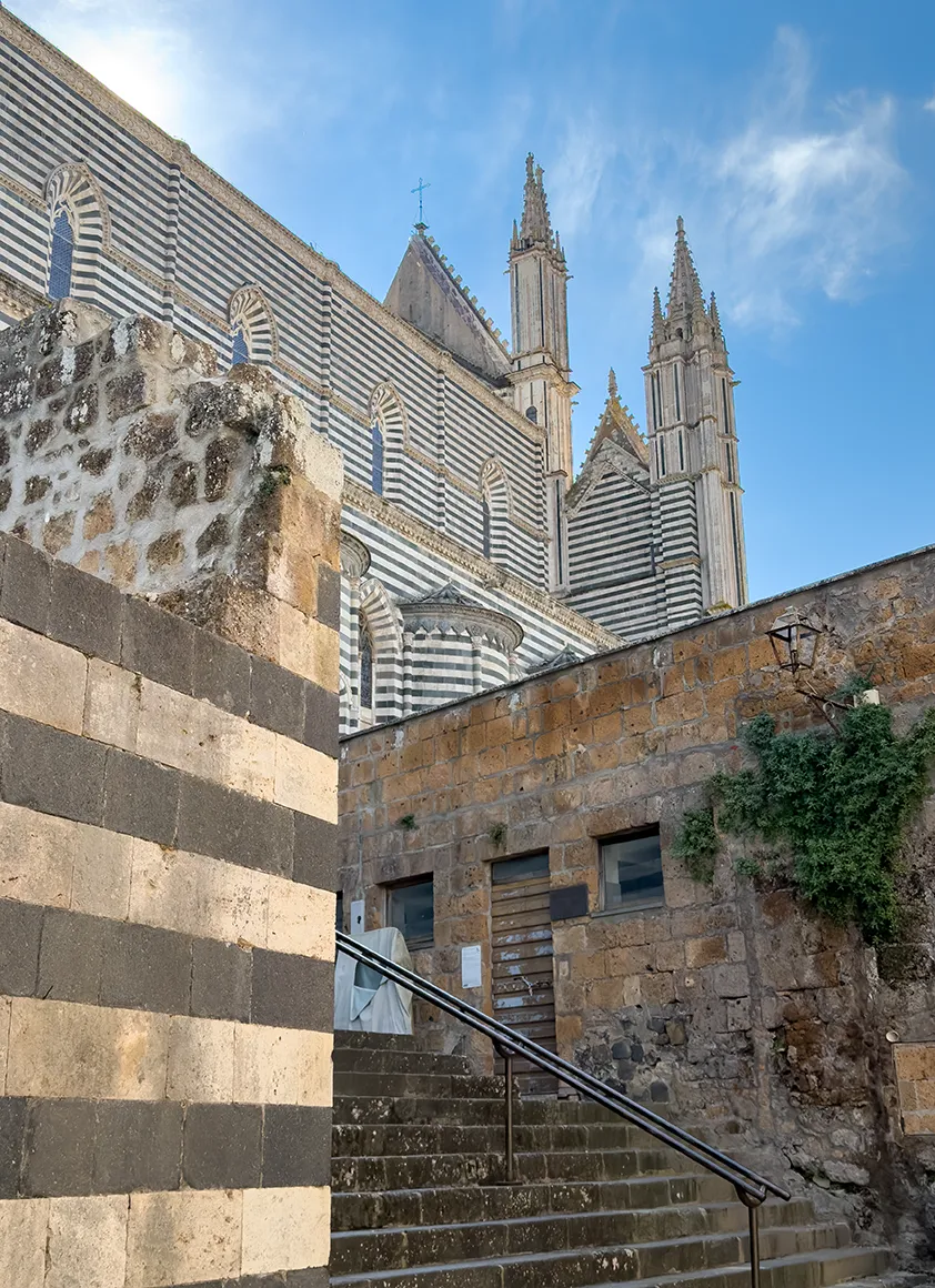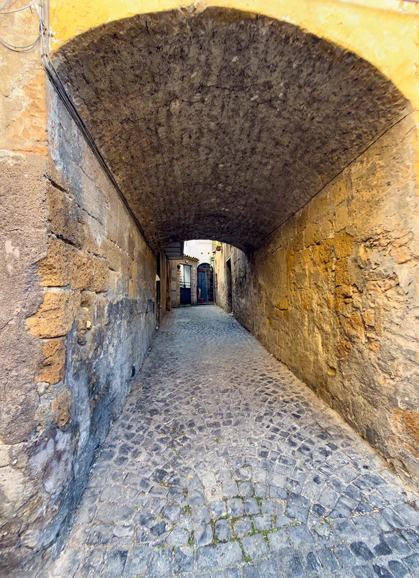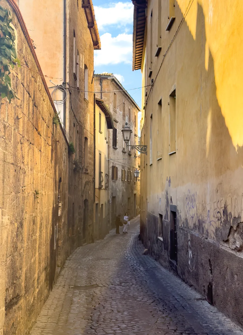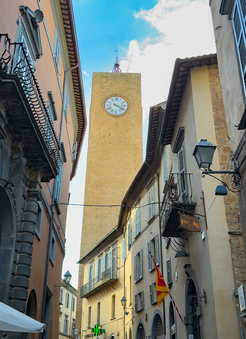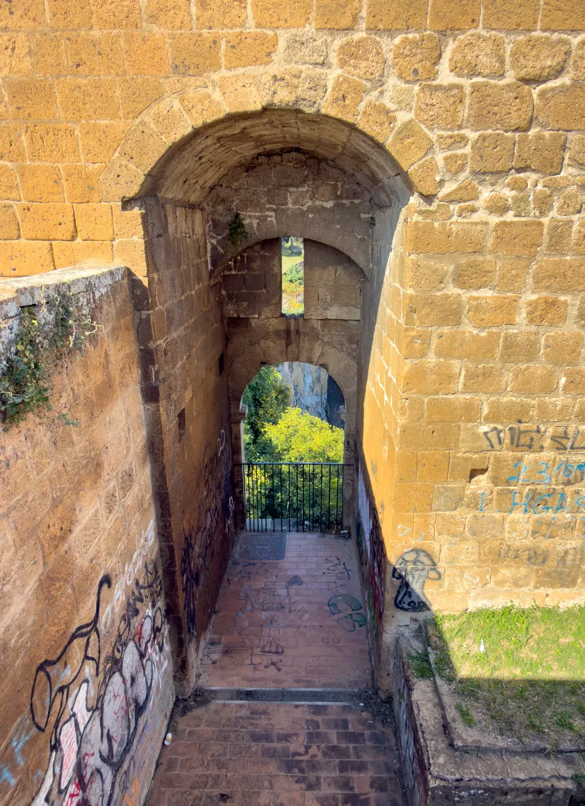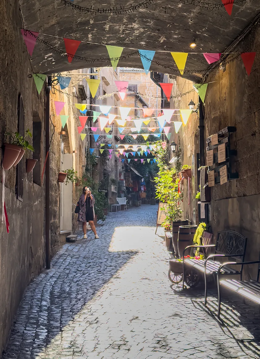 Nach dem traumhaften Mittagessen zieht es uns – wie magnetisch angezogen – weiter durch die Altstadt von Orvieto. Gut gestärkt und mit einem kleinen Espresso-Boost im Blut lassen wir uns treiben: durch Gassen, die sich wie Adern durch das historische Herz der Stadt schlängeln, flankiert von ockerfarbenen Mauern und schmiedeeisernen Balkonen, an denen noch letzte Geranien blühen.