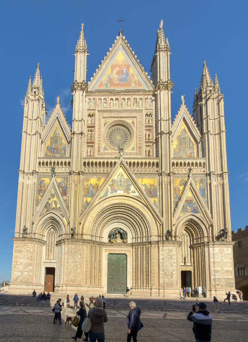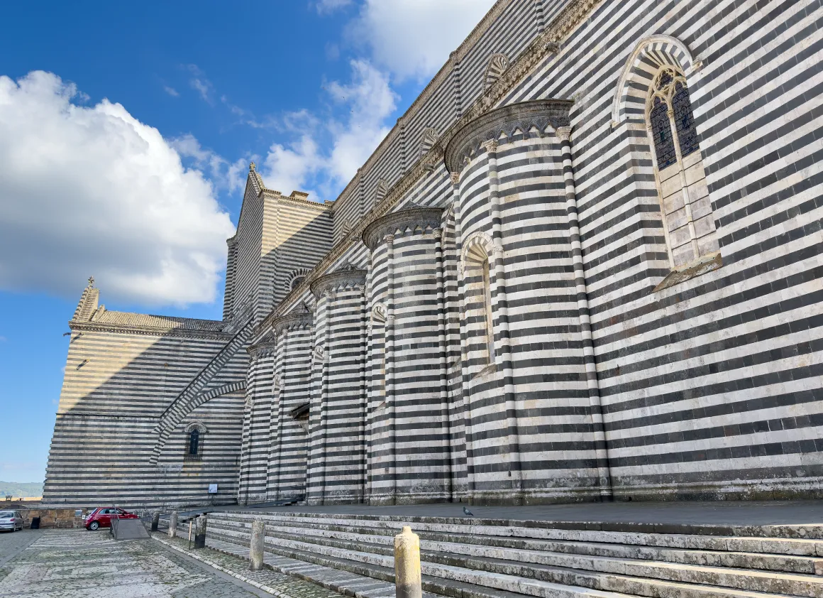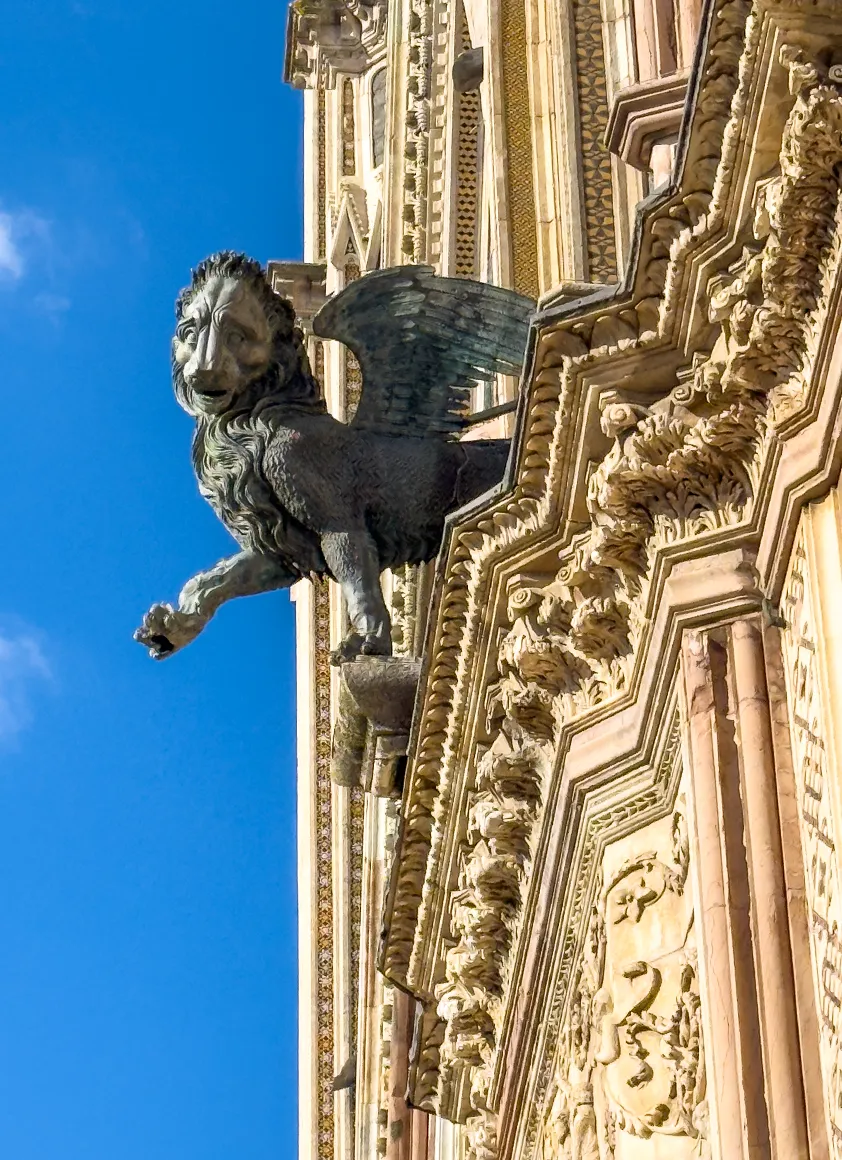 Und dann stehen wir plötzlich vor dem Duomo. Also dem Duomo. Majestätisch, gewaltig, mit einer Fassade, die aussieht, als hätte ein übermotivierter Kirchenbaumeister alle verfügbaren Stilrichtungen auf einmal ausprobiert – und dabei ein Wunderwerk geschaffen. Gotik, Mosaike, Skulpturen, Streifenmuster wie auf einem Zebrastreifen deluxe. Ich kann mich kaum sattsehen. Stefan übrigens auch nicht – allerdings mehr aus architektonischer Bewunderung denn aus Blog-Foto-Motivation.