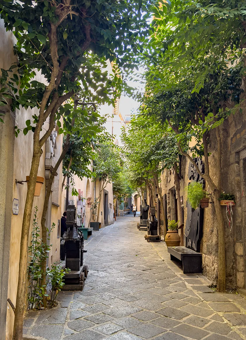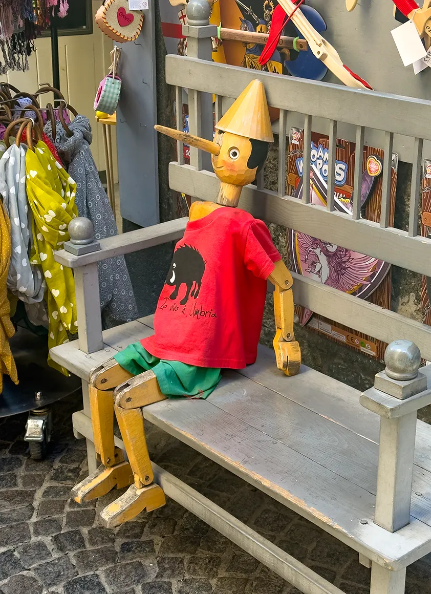 An jeder Ecke scheint ein Schaufenster zu warten, das dringend bewundert werden will: Kunsthandwerk, Keramik, lokale Spezialitäten und – natürlich – Pinocchios in allen Größen und Materialien. Ein hölzerner Kollege sitzt sogar auf einer Bank und wartet geduldig auf das nächste Erinnerungsfoto. Der Spaziergang ist wie ein Wimmelbild in 3D – je länger man schaut, desto mehr entdeckt man. Und: Keine Straße sieht aus wie die andere. Manche sind so schmal, dass kaum zwei Menschen aneinander vorbeikommen, andere öffnen sich plötzlich zu kleinen Plätzen mit Kopfsteinpflaster, auf dem die Nachmittagsruhe liegt wie ein weiches Tuch.