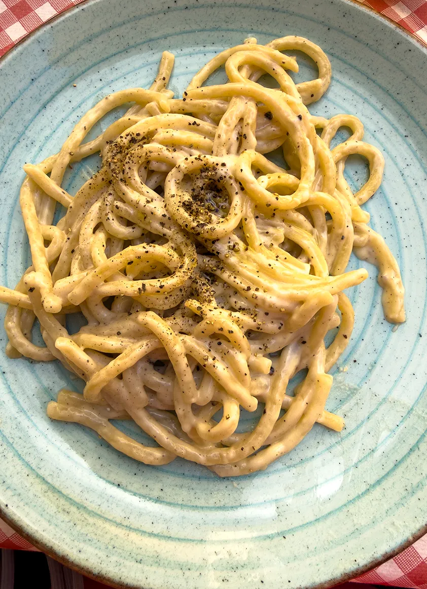 Gerade diese unperfekte Perfektion macht die Umbrichelli so besonders. Ihre leicht raue Oberfläche nimmt Saucen hervorragend auf – egal ob eine cremige Cacio e Pepe, eine würzige All’Arrabbiata oder die klassische Carbonara. Auch als Beilage zu Schmorgerichten oder gegrilltem Fleisch machen sie eine hervorragende Figur. In vielen Restaurants – wie in unserem Fall – gibt’s sie sogar als Menü-Highlight in mehreren Varianten, weil die regionale Küche zurecht stolz auf ihre Lieblingsnudel ist.