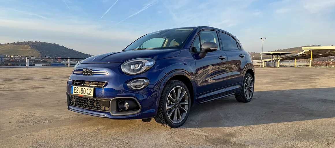 Ein bisschen klein, ein bisschen praktisch, ein bisschen erwachsener als der 500er ohne X – wobei „erwachsen“ relativ ist. Der 500er fährt ja eher optimistisch bis zur Realitätsverweigerung durchs Leben, der 500X grinst dabei genauso, weiß aber zumindest, wo er die Taschen unterbringt. Gebraucht. Baujahr 2024. Venezia Blau. Eine Farbe, die klingt, als würde das Auto beim Einsteigen leise „Ciao“ sagen und dabei freundlich winken – nach dem Motto: Passt schon. Kriegen wir hin.