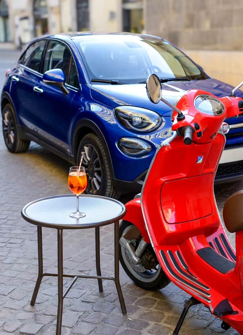 Die Vespa schnurrt irgendwas von bella vita. Der Fiat blinkt kurz zurück.