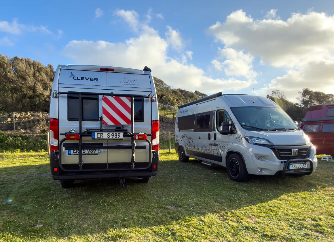 Frischwasser ist da, der Rest ist autarkes Abenteuer. Keine Entsorgung für WC oder Grauwasser vor Ort – also vorher leer machen, damit man die Zeit im Paradies ohne Tankanzeige-Panik genießen kann.