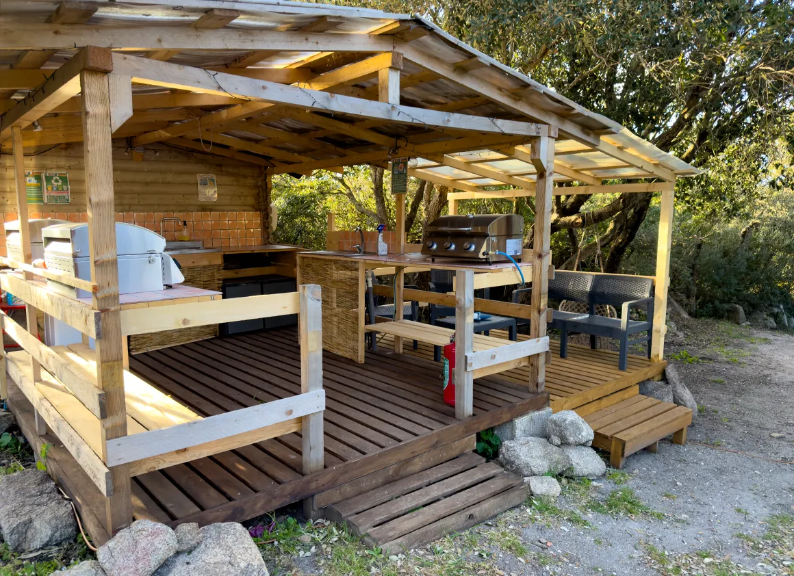 Das Duschen in den Holzhütten ist allerdings ein Abenteuer für sich. Man steht unter dem heißen Wasser, genießt den Blick in die Baumwipfel und plötzlich – zack! – schießt ein eiskalter Windzug um die Ecke, der einen daran erinnert, dass man eben doch mitten in der Natur steht. Und wenn dann noch das Warmwasser beschließt, eine Pause einzulegen, wird die Dusche zum ultimativen Kneipp-Erlebnis. Aber hey, alles ist blitzsauber und hat so viel Charakter, dass man darüber nur lachen kann. Ein wunderbar gepflegter Ort für alle, die das echte Sardinien suchen und wissen, wie man einen Gasgrill bedient!