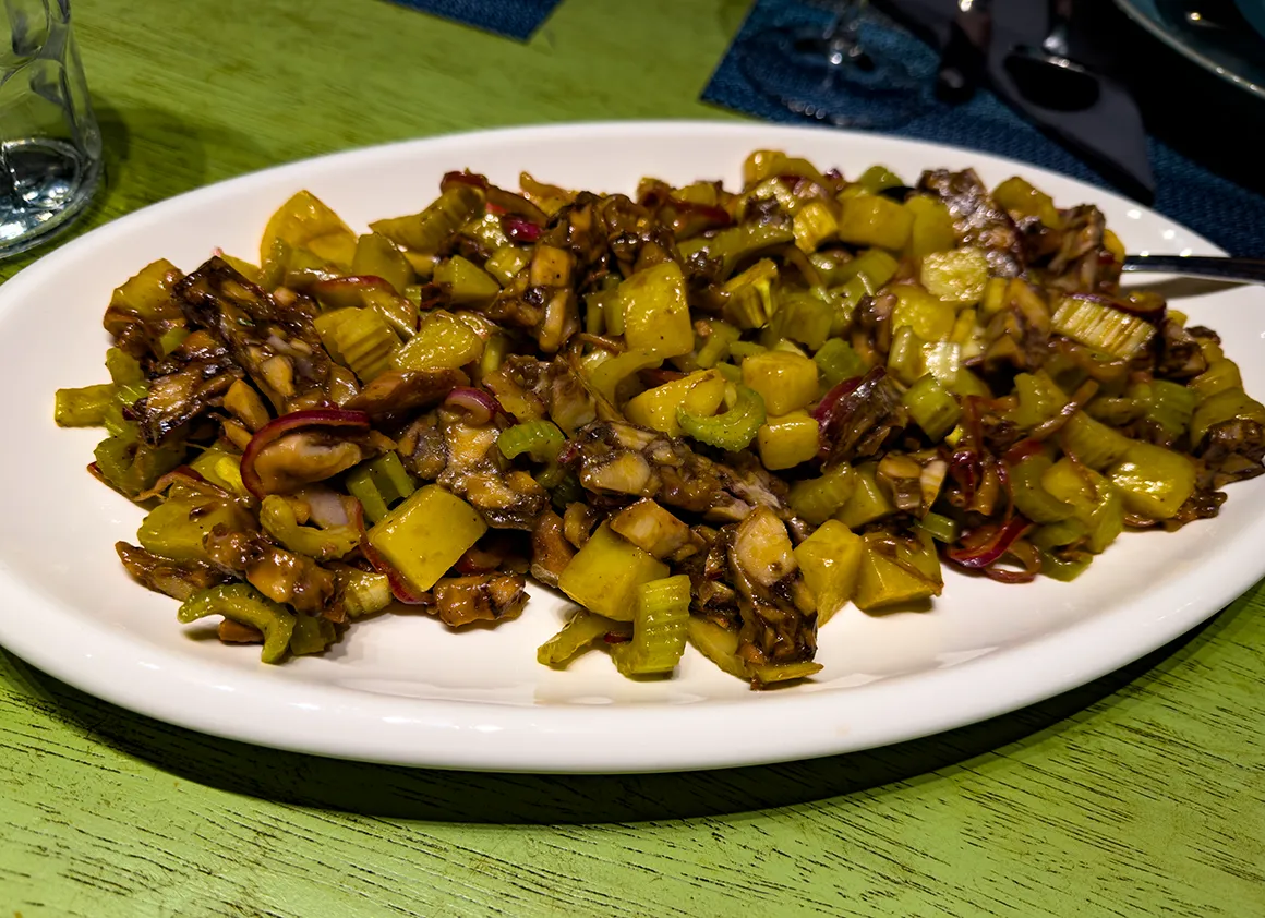 Und das Abendessen? Leute, ein absoluter Knaller! Hier kommt absolut nichts aus der Tüte. Wir saßen direkt bei den beiden in der Wohnung am Tisch, haben gemeinsam gegessen, gelacht und gequatscht. Der Oktopus-Salat war ein Gedicht, die Ravioli ein Traum, dazu Oliven und Brot. Man schmeckt bei jedem Bissen die sardische Sonne. Während wir uns über Gott und die Welt unterhielten, floss der Rotwein, gefolgt von einem Myrto, der so lecker war, dass er eigentlich verboten gehört. Ehe wir uns versahen, war es 23:30 Uhr, als wir – beseelt von der Gastfreundschaft und dem Wein – den kurzen, aber glücklichen Weg zurück zum Camper antraten. Mehr Familienanschluss geht nicht!
