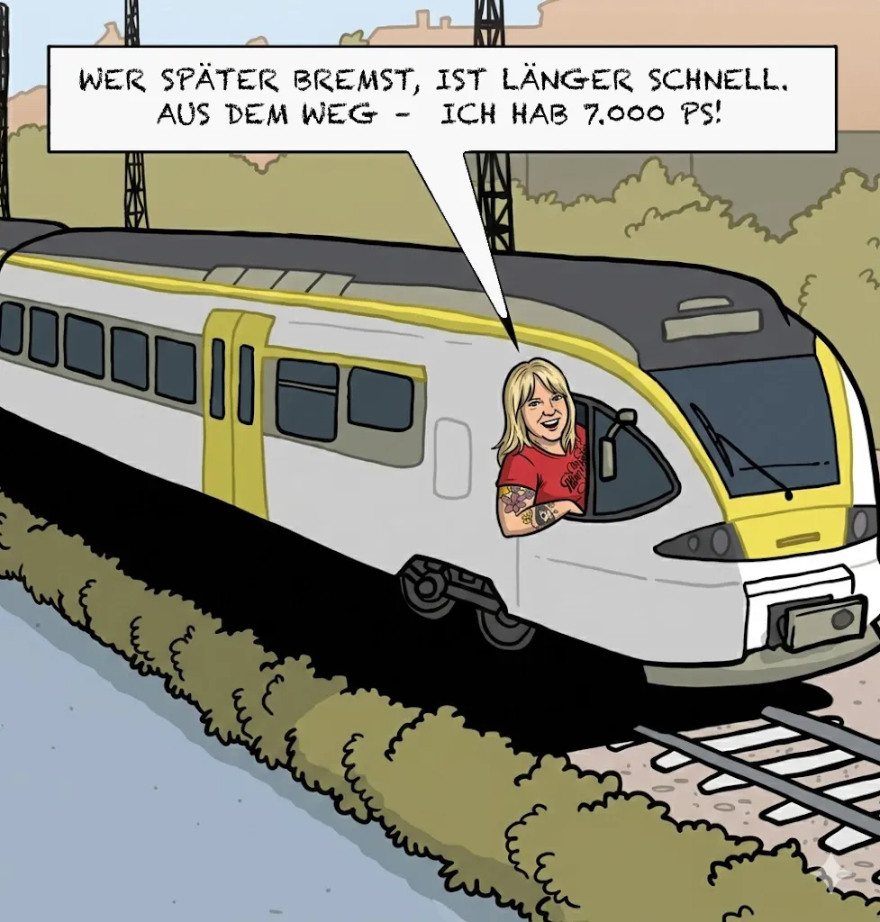 Manche Leute kaufen sich mit 55 einen neuen Toaster. Ich habe mich stattdessen für eine Lok entschieden. Gut, nicht direkt zum Mitnehmen, aber als Arbeitsgerät. Im Jahr 2021 Jahren habe ich beschlossen, mein Leben einmal komplett umzukrempeln und eine Ausbildung zur Lokführerin zu machen – mit allem, was dazugehört: Technik, Verantwortung und gelegentlichem Stirnrunzeln darüber, wie viele Knöpfe so ein Führerstand haben kann.